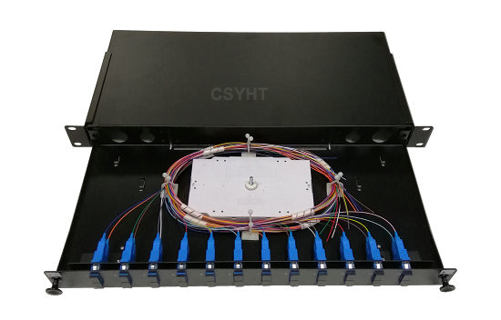 | ODF-RS-205 | W430*D205*H44 (mm) | 12, 24, 48 fibers | 12 - 24 SC, LC, FC, ST adapter ports | Max. 2pcs splice tray OST-011 or OST-035 |